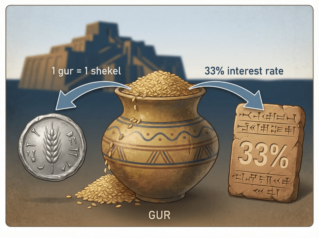 In ancient Mesopotamia (modern Iraq), the economy ran on barley. One gur of barley, about 300 litres, was worth one shekel of silver. This wasn’t a suggestion. It was the state-regulated exchange rate that governed all wages, taxes, and trade.​