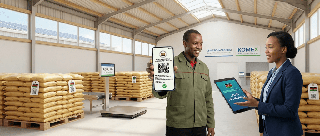 After e-WRS: Farmer deposits maize in a certified warehouse. Gets an electronic receipt, a legally binding digital document integrated with the national ID system and KRA. Takes that receipt to a bank. Bank says: “We see you have 600,000 shillings worth of certified maize. Here’s a loan.” Farmer uses the loan for seeds, school fees, or investment. Sells the maize three months later when prices have risen 20%. Repays the loan. Keeps the profit.​