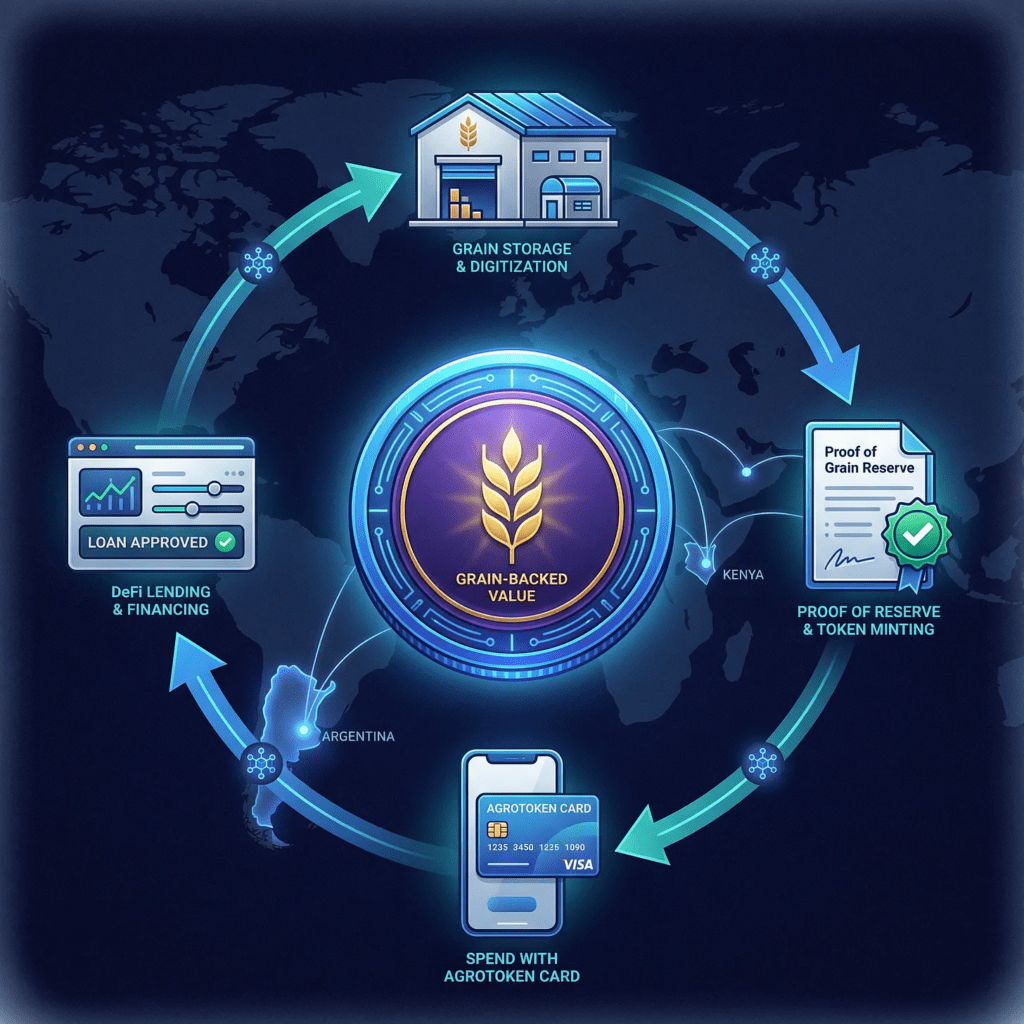 In Argentina, Agrotoken has turned this exact concept into a blockchain-native product. One token = one ton of grain. The grain sits in a warehouse. A “Proof of Grain Reserve” certificate backs the token. In 2022, Santander started accepting Agrotokens as loan collateral, “the first global experience in backing loans with tokens related to agricultural commodities”.